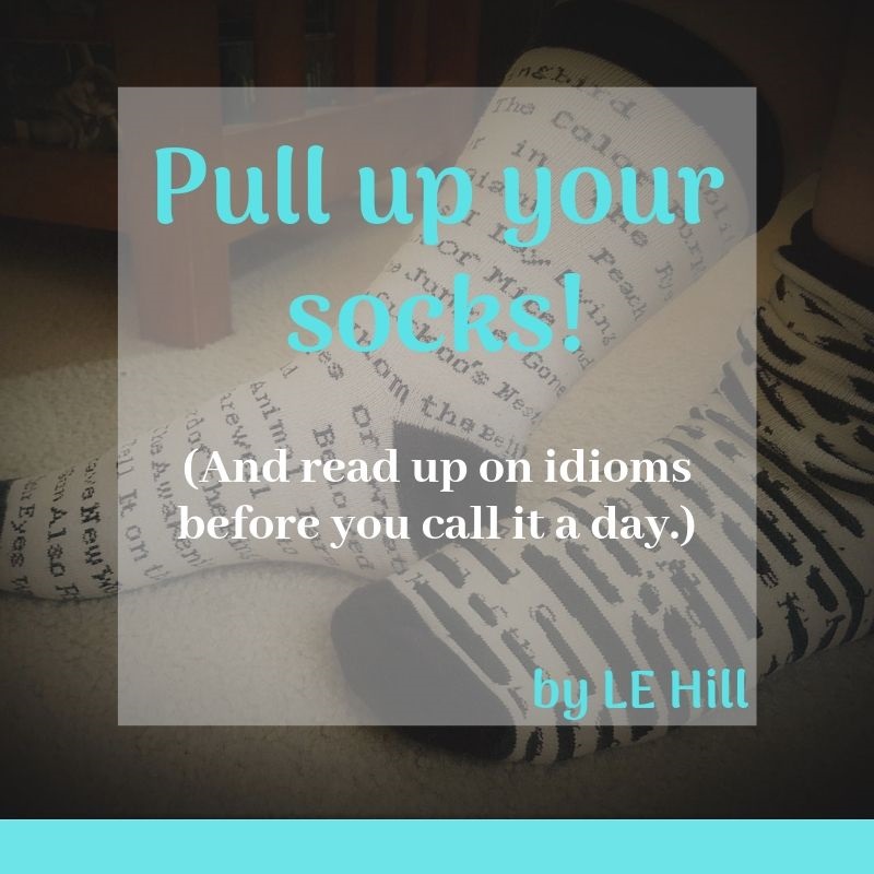 It’s an informal phrase used in the UK, according to the online Cambridge Dictionary, and it’s a wonderful idiom that I am adding to my mental writing dictionary. What’s an idiom? It’s an expression with a particular meaning that should be taken figuratively, not literally. (In other words, I wasn’t actually being told to pull up my socks.)