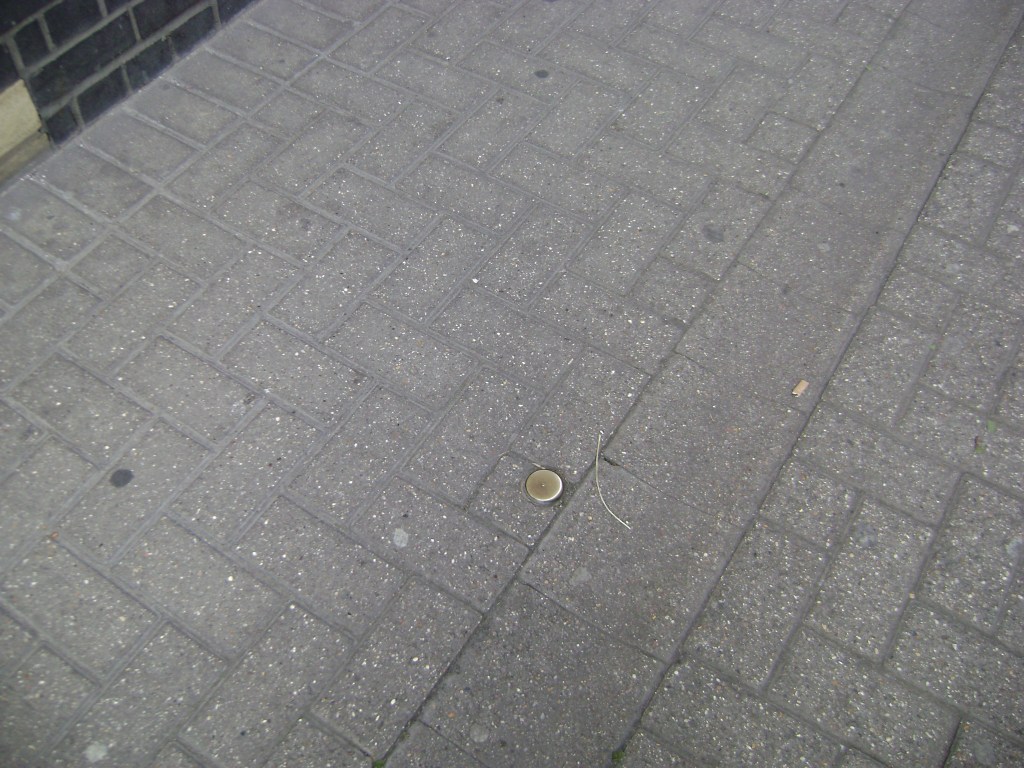 This is a picture of a bit of sidewalk in London, taken in 2009. This is not an “oops” pic, I deliberately pointed my camera and took the picture of…the pavement. A shiny metal thing in the stone. I honestly don’t remember what the motivation was beyond a bit of sidewalk in London. It was my first visit and I fell in love after two minutes of being on the train from Heathrow to meet up with a friend.