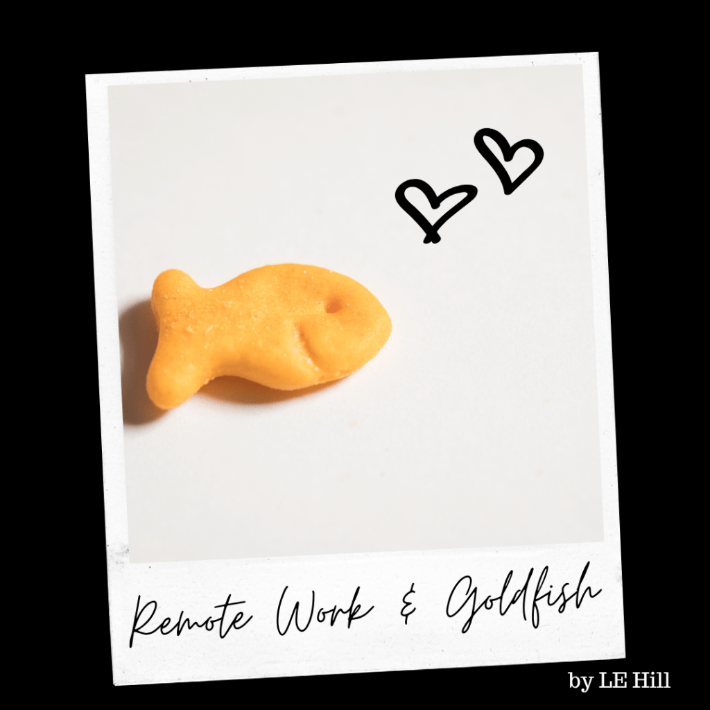 It’s a new, if temporary, normal. I’ll get used to it just in time for everything to change again, but until then I’ll be spending an hour each day finding new ways to make my work area even better, buying more Pepperidge Farm Goldfish in bulk, and ignoring the call of my bed for an afternoon nap in order to keep working for the money to buy the Goldfish. And pay bills, but mostly for the Goldfish.