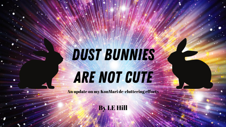I began gathering books from shelves where I had also stored random paperwork and knick knacks and oh my god I do believe entire universes had been created for dust bunnies to live in harmony with all of their families, friends, and even enemies on those shelves (and in the boxes).