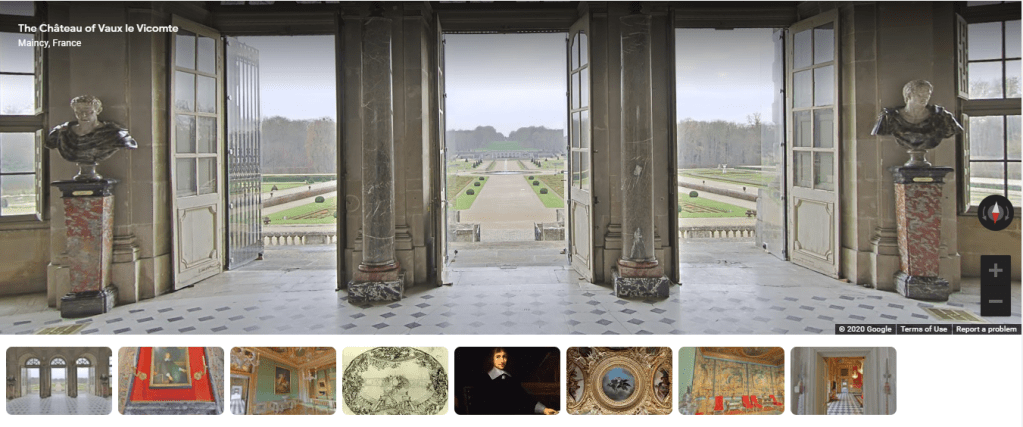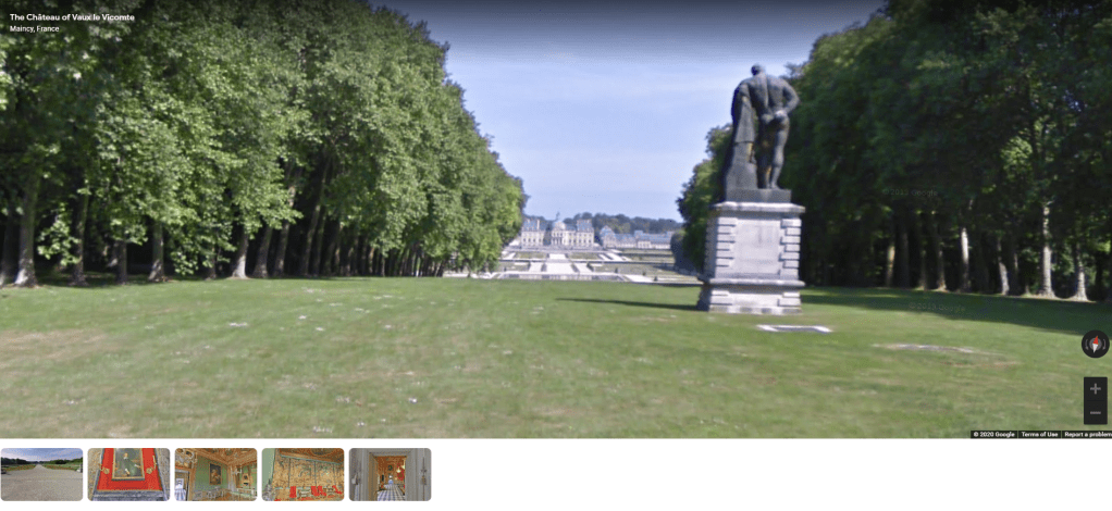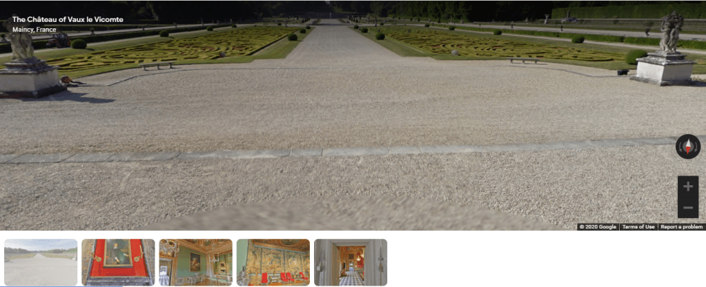 We are very lucky that Vaux-le-Vicomte partnered with Google to create a virtual tour experience of many rooms in the chateau as well as the formal gardens. For the long way around, go to: