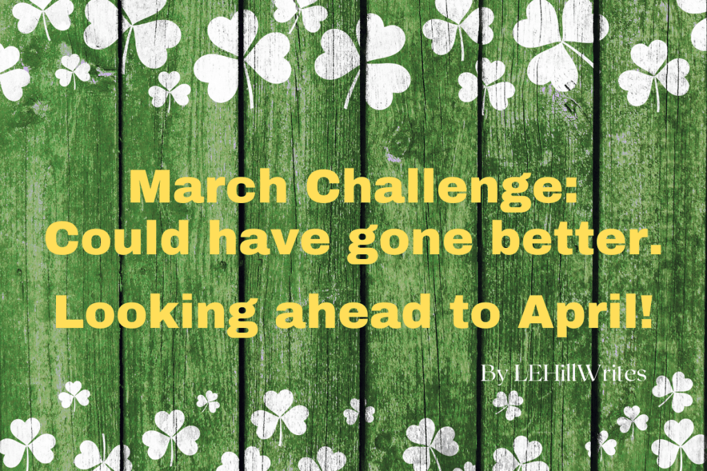 So, I come out of the March challenge happy to be reading again, and disappointed that I will be going into April without the mystery blueprint that I’d planned. I’m hopeful that I can still continue with Writing & Selling Your Mystery Novel and participate in Camp NaNo.