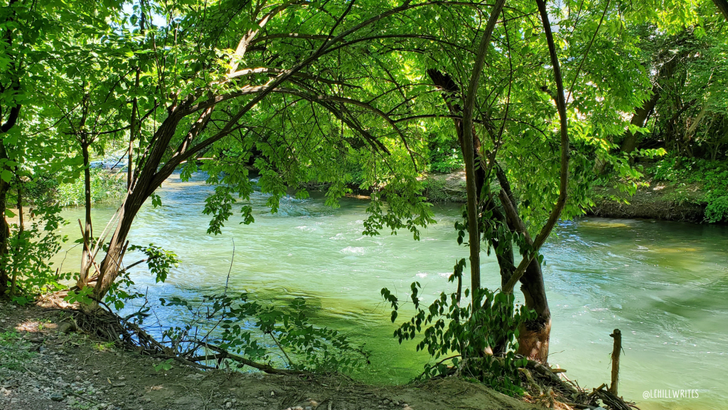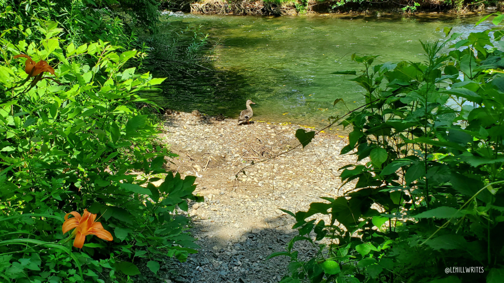 It means that you can hear the cars zooming past, but the noise quickly fades as you walk beside the Monocacy Creek. There are little paths leading to the creek every few feet, it seemed, for fishermen to use. We saw a few young hopefuls on our walks.