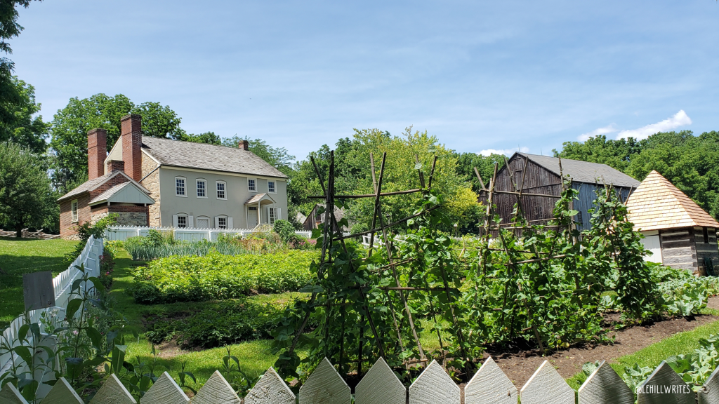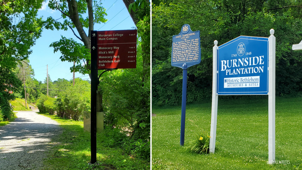 Eventually, the path takes you behind Burnside Plantation and the large garden that is surrounded by a high, wooden fence. The farmhouse was built by James and Mary Burnside in 1748 and was the first private home in the Bethlehem Moravian community.