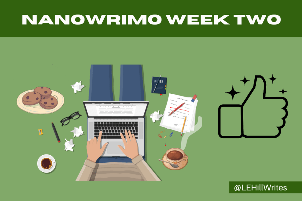 15 Nov 202220 Nov 2022 LE Hill Writes NaNoWriMo Week Two: Looking Good! Week Two went much better! Still not at the word count I should be, but maybe Week Three will get me back on track. Back to writing. Share this: Click to share on X (Opens in new window) X Click to share on Facebook (Opens in new window) Facebook Like Loading... Related